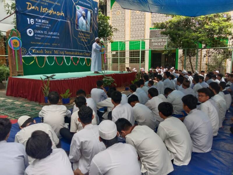 Pada tanggal 15 Februari 2024, SMKN 10 Jakarta akan mengadakan kegiatan peringatan Isra Mi’raj Nabi Muhammad Shallallahu `alaihi Wa Sallam. Kegiatan ini bertujuan untuk memperingati salah satu peristiwa penting dalam sejarah Islam dan menanamkan nilai-nilai keagamaan serta moral kepada siswa. Peringatan Isra Mi’raj juga menjadi momen penting bagi seluruh warga sekolah untuk memperkuat iman dan mempererat tali silaturahmi.