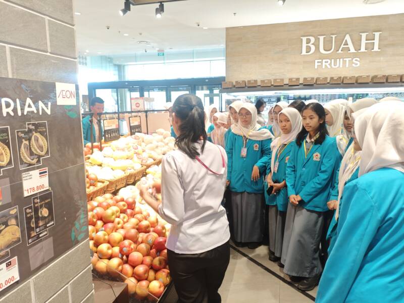 Para siswa diajak untuk melihat langsung operasional ritel modern yang berskala internasional. Mereka mendapatkan pemaparan dari manajer AEON terkait strategi bisnis, manajemen stok, dan pelayanan pelanggan.